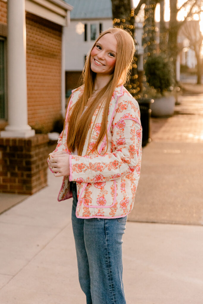 This session was less about perfection and more about vision. I wanted to play with light, texture, and movement. I wanted to show future seniors that your session does not have to be complicated to be beautiful. Sometimes it is just about finding the right corners of a small town, the warm glow of golden hour, and letting personality lead the way.
